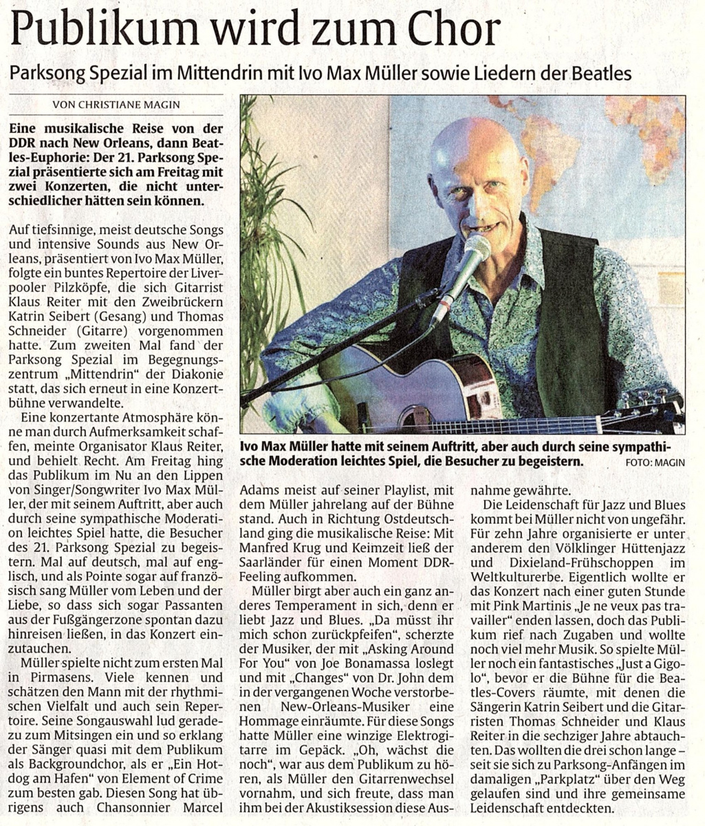 „Man muss sich Ivo Max Müller als singenden Gitarristen vorstellen, dem Manouche-Stile genauso zur Verfügung stehen wie anspruchvollste Jazz-Voicings. Die alleine können auch geübte Gitarrenspieler voll beschäftigen. Er spielt sie aber als Begleitung!“