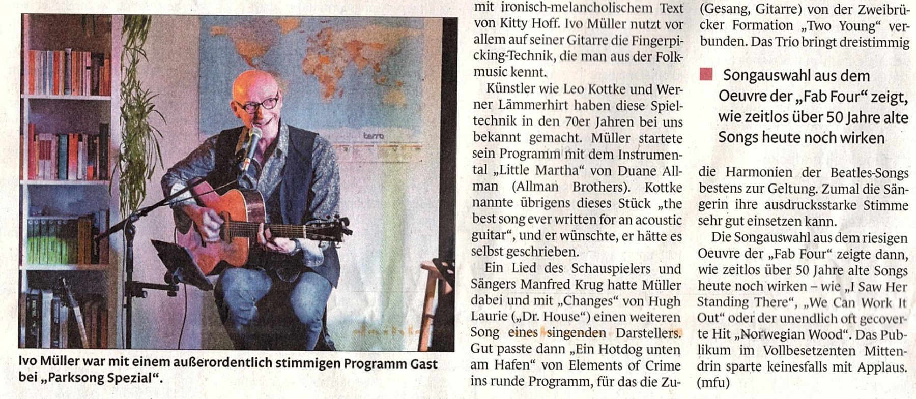 „Man muss sich Ivo Max Müller als singenden Gitarristen vorstellen, dem Manouche-Stile genauso zur Verfügung stehen wie anspruchvollste Jazz-Voicings. Die alleine können auch geübte Gitarrenspieler voll beschäftigen. Er spielt sie aber als Begleitung!“
