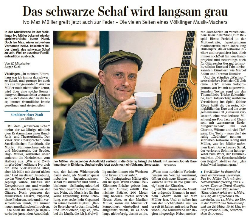 „Man muss sich Ivo Max Müller als singenden Gitarristen vorstellen, dem Manouche-Stile genauso zur Verfügung stehen wie anspruchvollste Jazz-Voicings. Die alleine können auch geübte Gitarrenspieler voll beschäftigen. Er spielt sie aber als Begleitung!“